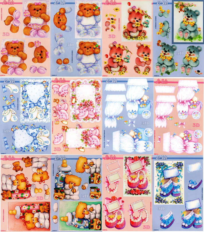 Diese kleinen 3-D-Motive passen sehr gut zu den "Stehenden Karten", aber auch andere Karten, Fotoalben oder Geschenkanhänger lassen sich damit gestalten.