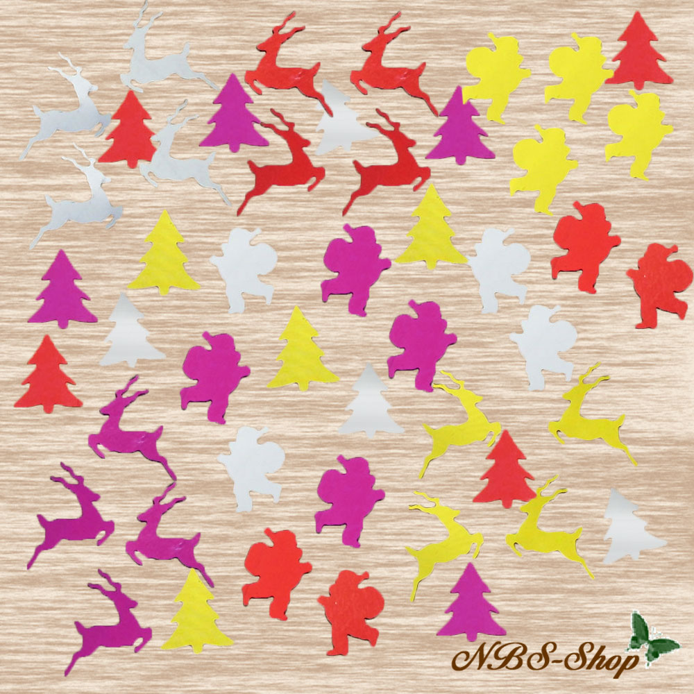 Tannenbäumchen, Rentiere oder Weihnachtmännchen in den Farben rot, lila, gold oder silber
