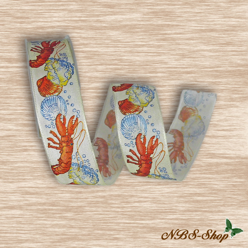 Schleifenband mit Drahtkannte "Hummer und Muscheln"