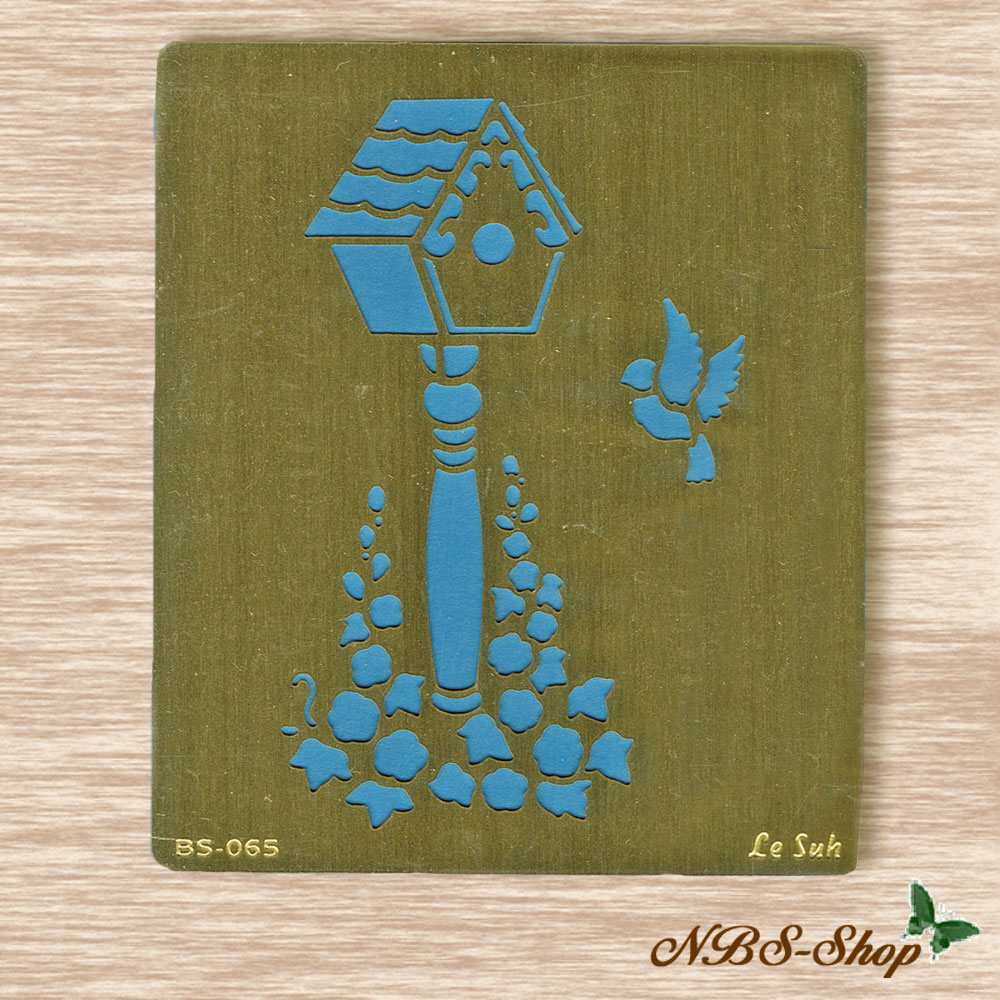 Prägeschablone / Embossing Schablone mit einem Vogelhaus und Vogel